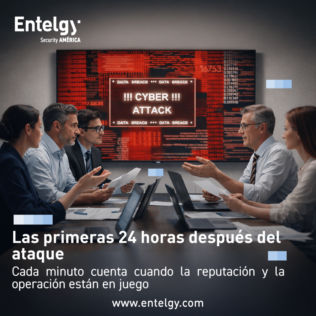 En Entelgy Security América sabemos que las primeras 24 horas después de un ciberataque no admiten margen de error. Cada decisión, cada acción y cada minuto influyen directamente en la capacidad de la organización para contener el incidente y evitar que escale. En este punto, la diferencia entre una respuesta eficaz y una reacción improvisada no está en la tecnología, sino en la preparación previa y en la coordinación de todos los elementos implicados.